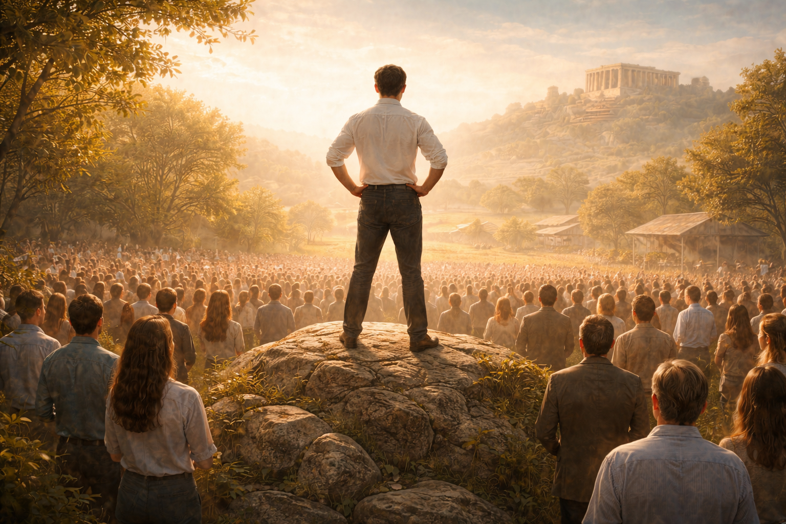 Στη Δημοκρατία, το πολιτικό σύστημα που συνιστά και δίνει τη μεγαλύτερη ελευθερία στους πολίτες, οι πολίτες έχουν την ευθύνη να καλλιεργήσουν και να επιλέξουν τους ηγέτες τους.